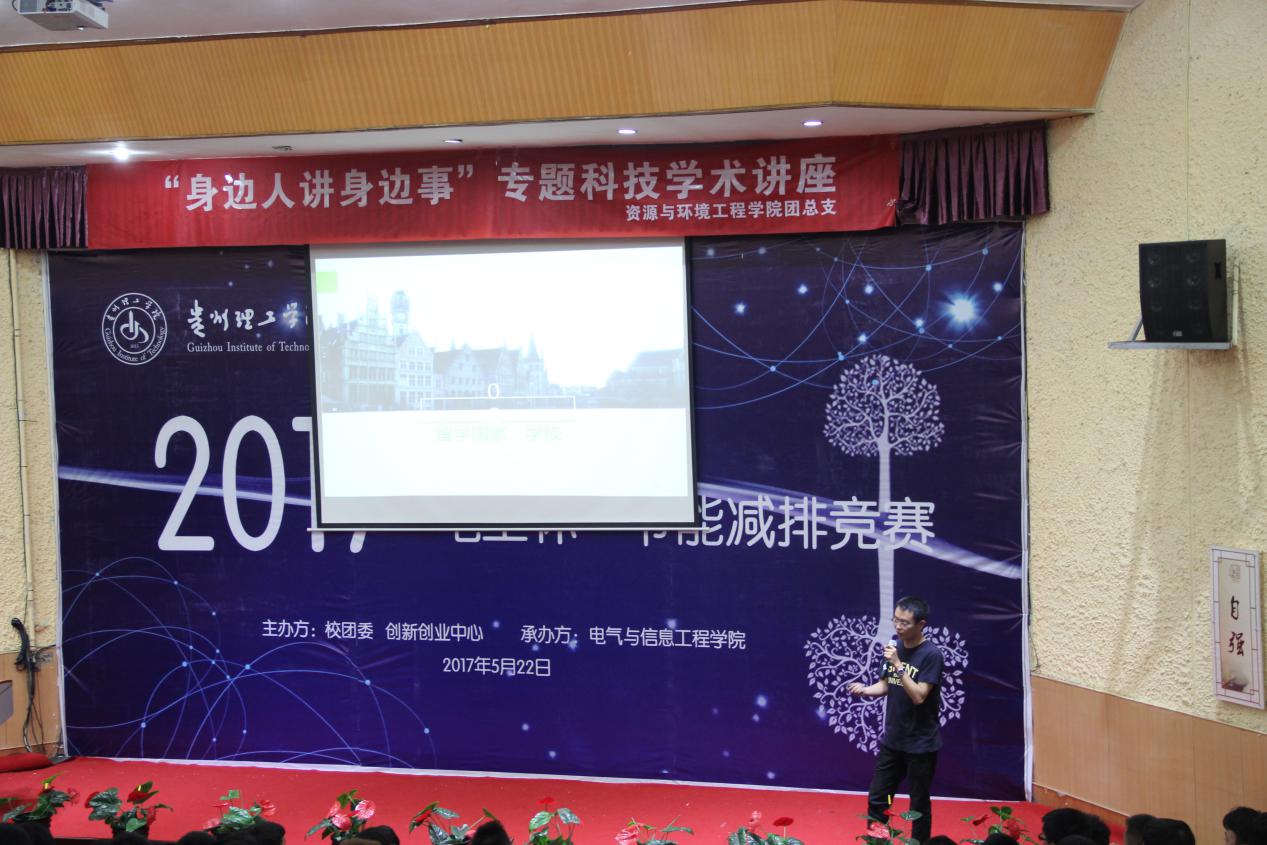 2017年5月23日,由资源与环境工程学院主办的“身边人讲身边事”专题科技学术讲座第一讲在逸夫小礼堂顺利进行。讲座邀请了资源与环境工程学院毛凯楠副教授作为主讲嘉宾,全校各学院部分学生参加了讲座。