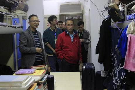 2019年4月15日晚7点,资环学院开展了“寝室革命,资环在行动”检查宿舍活动,对学生寝室卫生整改进行阶段性验收。学院党总支书记吴维义、副书记梁珍、副院长李桂贤、学生科副科长张双菊以及各年级辅导员班主任对资源与环境工程学院学生宿舍卫生进行了详细检查。