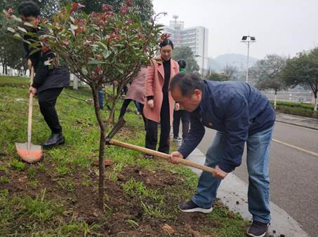 春回大地,万物苏醒。资源与环境工程学院积极响应学校号召,组织开展植树节校园绿化活动。2019年3月12日10:00,学院全体教师党员、部分学生以党支部为单位来到一实验楼旁靠天池方向的空地上进行植树,学院全体党政领导以党员的身份参加了此次植树节绿化校园活动。
