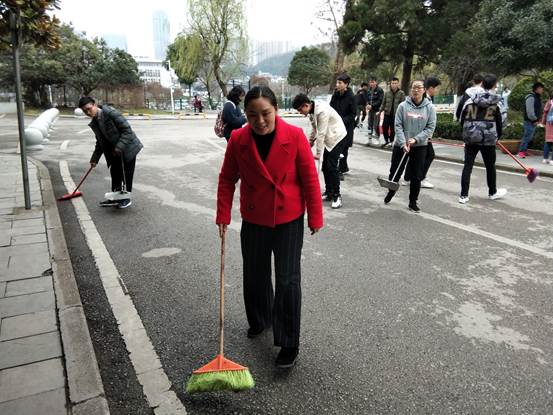 2019年3月5日上午,学生们在学院团总支副书记张双菊老师带领下来到负责区域,认真清扫所负责区域的环境卫生。