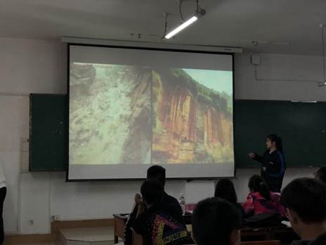 活动中毛凯楠老师进行点评:“同学们对地质图片的选择很有新意,能够从成因、发展等角度去介绍图片,希望同学们能够保持专业的学习态度,继续加强对地质现象的了解,把参加本次活动的精神延续到之后的学习中去”。