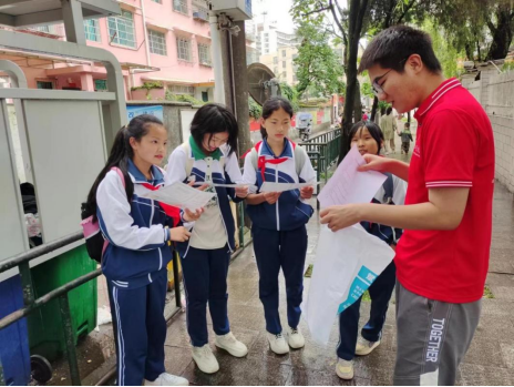 在资源与环境工程学院方宏萍老师的带领下,学生志愿者们在雅河周围宣传生态文明知识,并通过调查雅河周边环境情况、询问周边群众污染物产生及收集处置状况等方式开展巡查和调研活动。