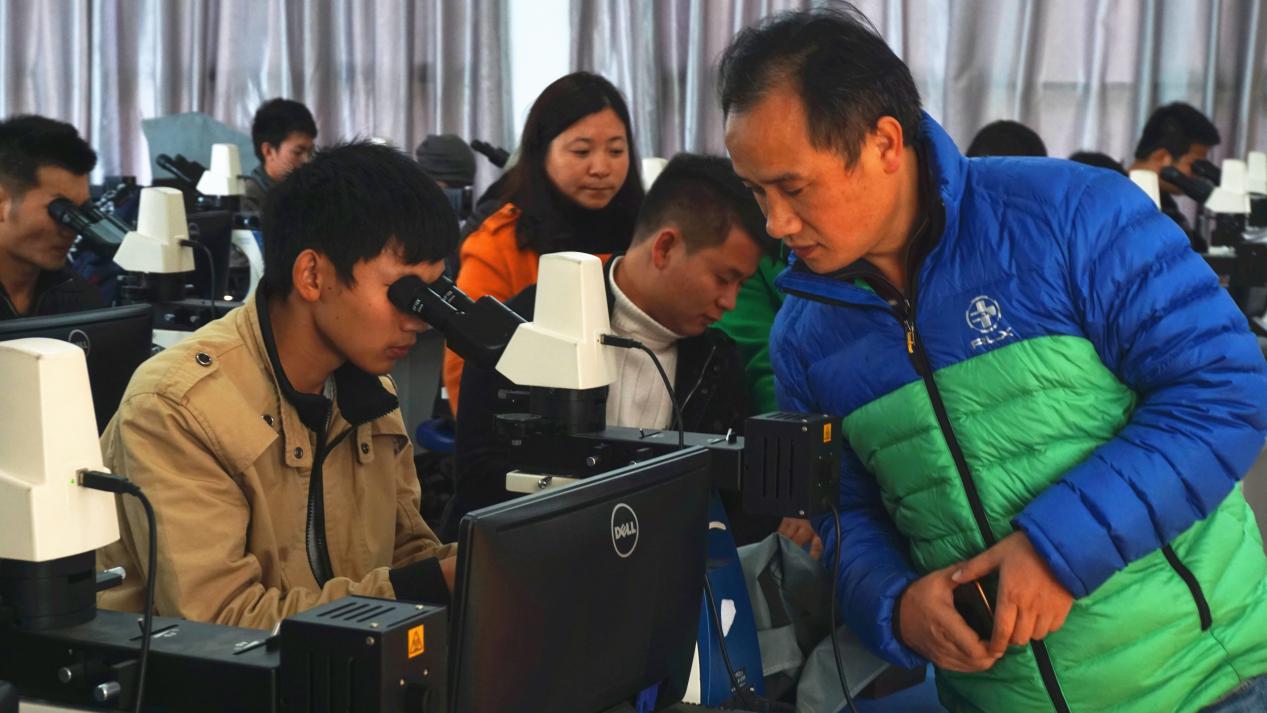 2016年11月23日中午13:00—14:00,由资源与环境工程学院主办,资源与环境工程学院团总支承办的以“追寻大师足迹•铸就地质梦想”系列活动之“岩石薄片、古生物标本鉴定”比赛,在资源与环境工程学院实验室613、620举行。鉴定古生物标本的613实验室和辨别岩石玻片的620实验室中,参加比赛的有13级、14级、15级工灾班和资勘班的报名者。资源与环境工程学院党总支书记、院长刘幼平老师、党总支副书记吴维义老师、学生科副科长张双菊老师一同参加观看了这场精彩的角逐。