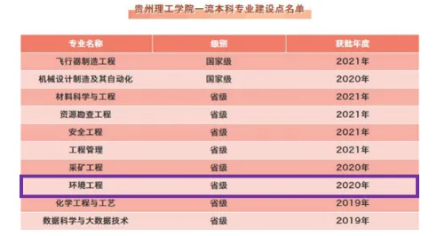 贵州理工学院环境工程专业于2015年经教育部批准设立并开始招生,2020年获批贵州省一流本科专业建设点。