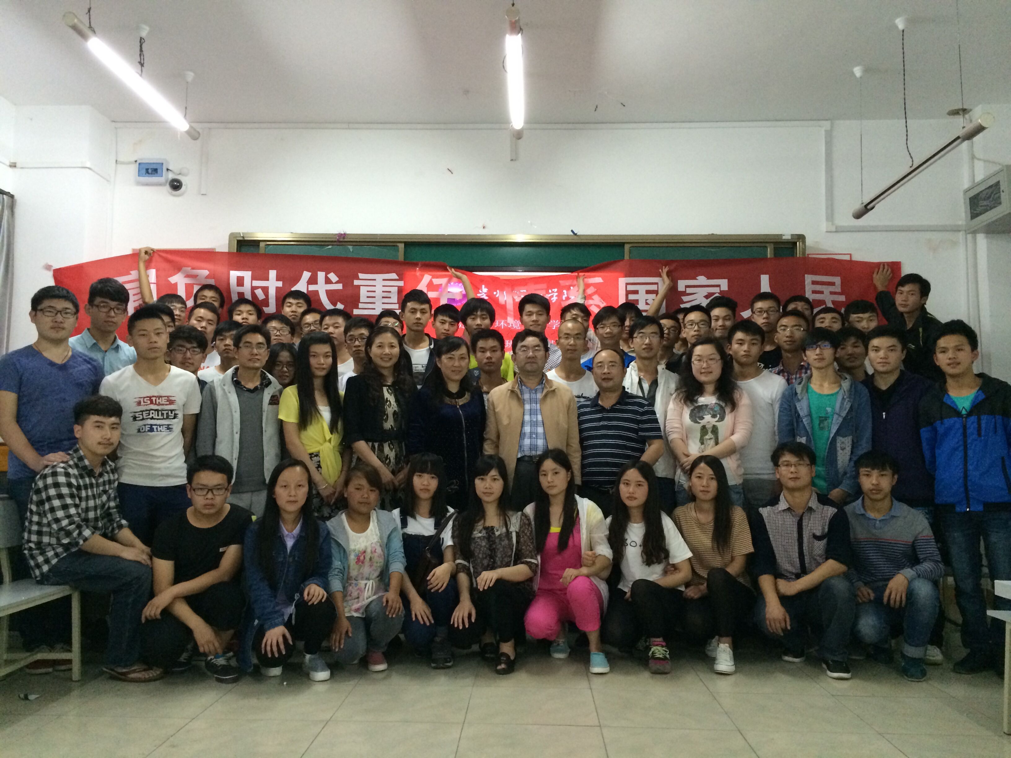 资堪141班通过视频学习了省委书记赵克志的讲话精神,并邀请校党委书记曾羽和院党总支书记刘幼平、院党总支副书记潘福炎、李桂贤副院长参加主题班会。会上,刘幼平书记先向主题班会致辞,随后同学们积极踊跃地阐述学习赵克志书记讲话的精神并表达自己的人生梦想,曾羽书记通过讲述他的人生经历对同学们提出了殷切希望:他希望每个同学都要有志向,有了志向才有动力和激情;希望每个同学都有舞台,都要参与到各种舞台上去锻炼,让自己的能力得到提升、各方面得到锻炼;希望每个同学都有进步,每天都有进步、多思考、勤于行动。真正的思考和行动起来,做贵州工业发展坚挺的脊梁,并与同学们一道在横幅上签名、合影。固矿131班的主题班会上,同学们争先恐后畅谈自己对赵克志书记讲话精神的深刻理解并提出独到见解,在如何实现“中国梦”以及141班开展了以“用责任点亮青春,让青春因奉献而怒放异彩”为主题的团日活动。工灾131班的主题活动邀请了院副书记潘福炎老师、院团总支书记张双菊老师、理学院周广东老师及其它二级学院的学生干部代表,围绕赵克志书记五四讲话精神就“青年大学生如何经营好自己,践行社会主义核心价值观”,“练就过硬本领,勇于创新创业,争做脊梁”等问题展开讨论。工灾141班不仅观看了赵书记五四青年节之际来到学校调研全过程的视频,还邀请院长聂爱国、院党总支副书记潘福炎到会座谈。工灾142班开展了“弘扬五四精神,奉献火热青春”的主题班会,班会上同学不仅踊跃发言,还积极展现了自己的才艺,使此次主题班会变得有声有色。其他各个班级的主体班会也组织得生动活跃、丰富多彩。