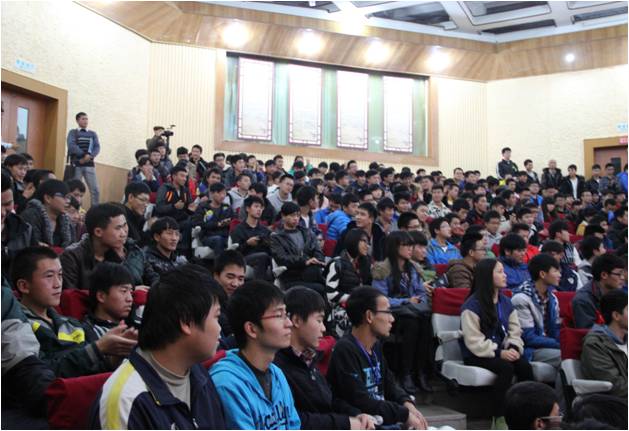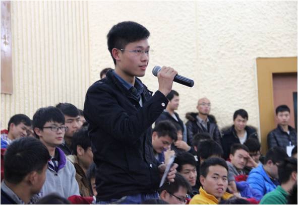 濮研究员以其亲身经历和对防雷事业的独到见解为我们呈现了一场精彩的讲座。他讲述了自己如何由一个二级警督成功转型为一位防雷专家,如何在困难面前不屈服不放弃,在崎岖的科学研究道路上攻坚克难、坚持前行,成长为一名工程技术应用研究员,并最终攻克了“电化学腐蚀”这个世界性的难题。他用“活在志气里,行在追求中”激励在座的师生,要抛凡尘杂念、耐得住寂寞、懂得感恩,坚持走科技创新之路、民族品牌之路,争取为贵州争光!整个会场座无虚席,不时响起阵阵热烈的掌声。最后,濮研究员与同学们亲切的互动,并耐心地解答同学们的防雷安全问题。