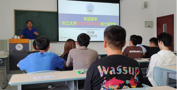 接着,长江大学文志刚院长通过报考院校与专业的选择、目前研究生阶段的资助政策、以及如何调剂等内容,与同学们展开了交流,同时也通过短视频与PPT向同学们介绍了长江大学以及长江大学的特色技术和招生政策,给同学们提供考研动力,增强考研信心。