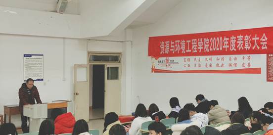 2020年12月23日,资源与环境工程学院2020年度优秀学生表彰大会在3-415教室举行。本次大会旨在表彰优秀学生干部、先进个人、科技节获奖同学,同时为学生会、团总支任职同学颁发聘书。出席会议的有学院党总支书记吴维义老师、副院长李桂贤教授和各年级辅导员老师,获得表彰的学生代表和20级部分学生参加此次大会,会议由梁珍副书记主持。