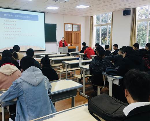 (本网讯图/文 李刚)为进一步提高我院2016级学生就业意识,加强学生对当下就业情况的了解,促进我院学生积极就业,11月18日上午12点,我院在二教211教室为2016级全体学生举办了名为“抓住当下机遇 铸就美好未来”的就业指导主题讲座。本次班会由辅导员李刚老师主持,我院学生科科长、团总支书记张双菊老师主讲。