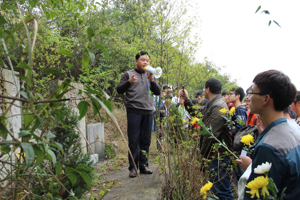 在此次活动中,全体师生带着沉重肃穆的心情,手持白色、黄色的菊花来到地质陵园。首先,聂爱国老师向大家详细介绍了相关地质前辈事迹。随后,资环学院的师生们在地质先烈的碑前进行了清除杂草、敬献鲜花、集体默哀以及共同宣誓等纪念活动,最后,全体师生一起围绕瞻仰了各位先烈的墓碑。