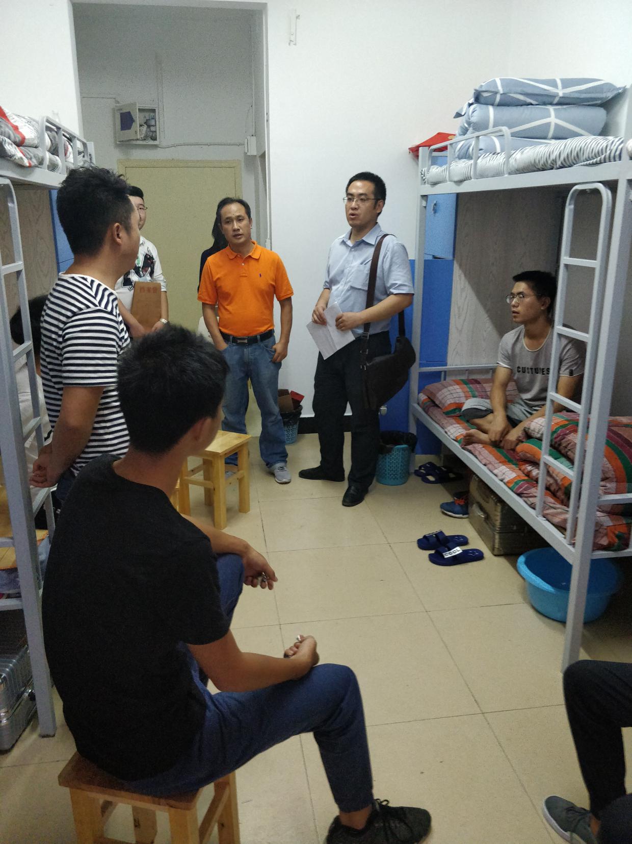 白天的报到结束后,晚上七点学院院党总支副书记吴维义与17级的新生辅导员、班主任一起到新生宿舍进行查看,了解新生的入住情况、宿舍的条件等,备受关注的新生们再一次体会到了资环大家庭的温馨。