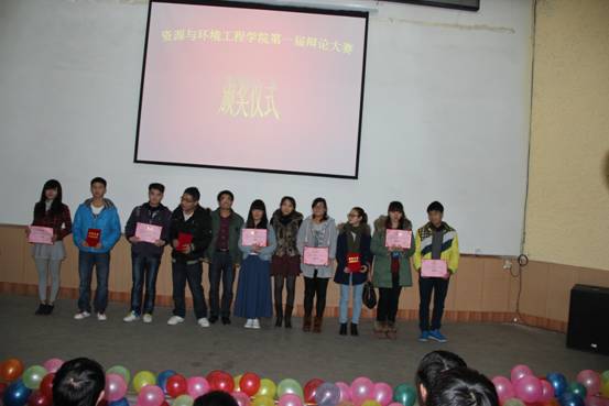 此次大赛,征得全院学生数份文章,学生们畅所欲言,深深表达出对地质专业的喜爱与未来地质工作的向往。最终,评委老师们经过初评、复评、终评三个阶段评选出优秀文章。陈明丽同学以积极创新的思维方式从众多投稿学生中脱颖而出荣获一等奖,罗涛、朱志春两名同学荣获二等奖,赵丹等三名同学荣获三等奖,孙孔丽等四名同学荣获优秀奖。颁奖仪式于12月9日与资环学院辩论大赛颁奖仪式一起在逸夫学术报告厅进行,资环学院领导及教师为获奖同学颁发荣誉证书及奖品。