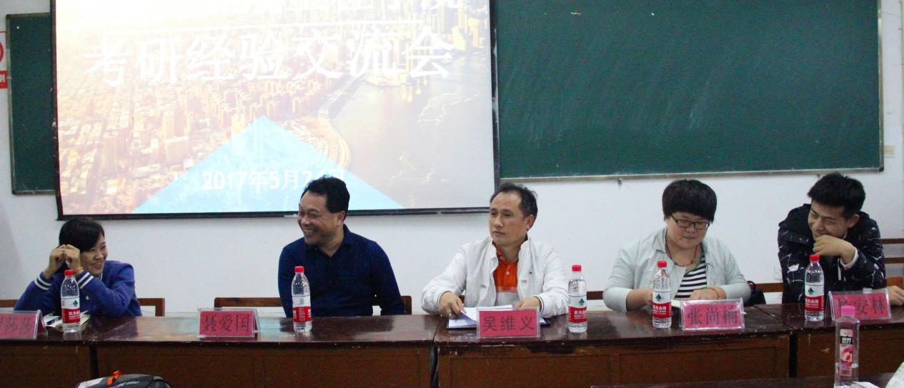 2017年5月24日晚7:30,资源与环境工程学院在3教114圆满举办了以“易”起分享 、“易”起考研为主题的考研经验交流会。资环学院党总支副书记吴维义老师、资环学院教授(贵州大学博士生导师)聂爱国老师,2013级考取研究生代表以及2014级准备参加考研的同学参加了交流会,交流会由资环学院学生辅导员李永老师主持。