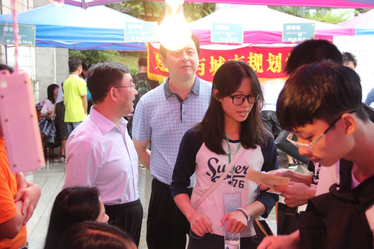 校党委书记曾羽和副书记张波来到资环学院迎新点视察