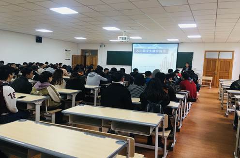 (本网讯图/文 李刚)为进一步提高我院2016级学生就业意识,加强学生对当下就业情况的了解,促进我院学生积极就业,11月18日上午12点,我院在二教211教室为2016级全体学生举办了名为“抓住当下机遇 铸就美好未来”的就业指导主题讲座。本次班会由辅导员李刚老师主持,我院学生科科长、团总支书记张双菊老师主讲。