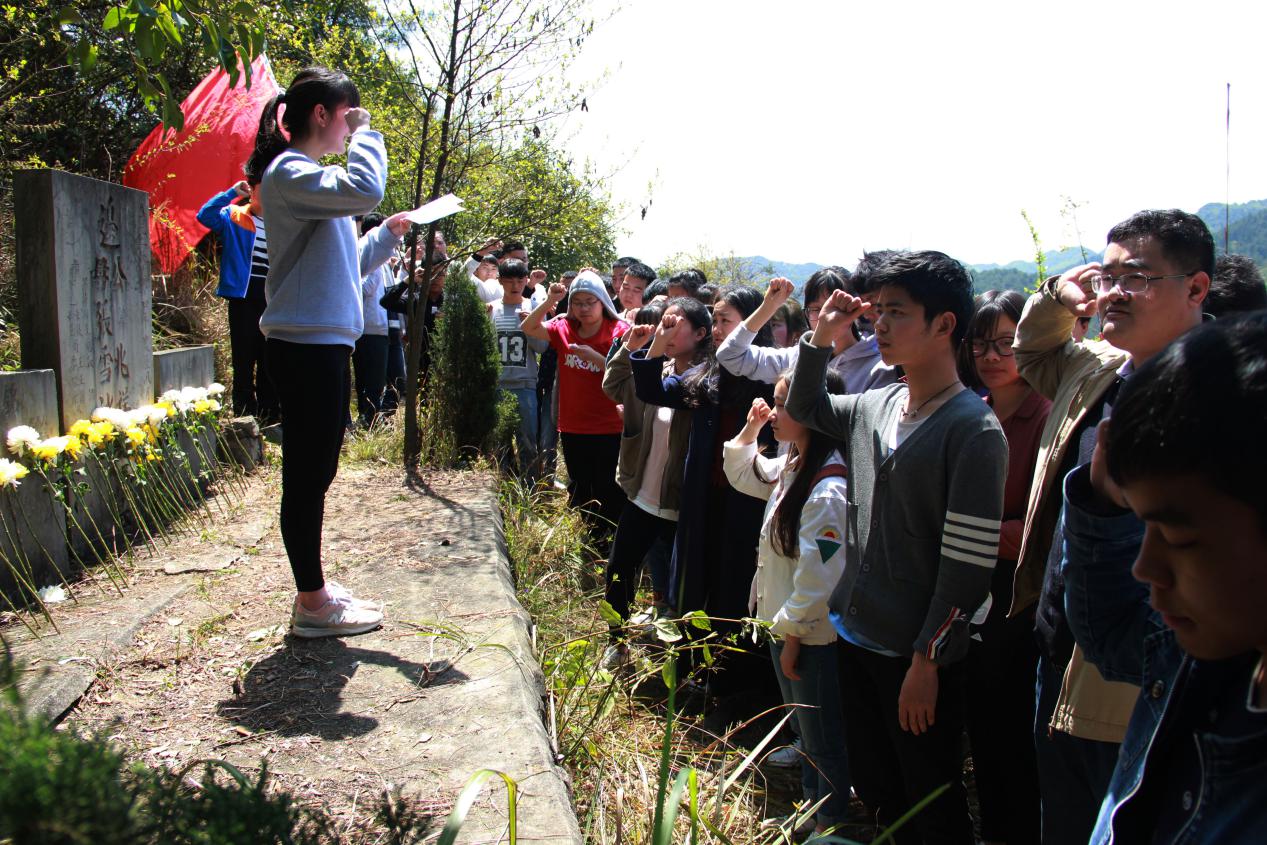 在出发前,学院党总支书记、院长刘幼平满怀深情给大家讲解了地质陵园的历史,向全体师生传达了此次活动的目的和意义,希望同学们努力学习知识、锻造品德,为祖国未来发展储存力量,以实际行动表达对革命先烈的感恩怀念。在到达地质陵园后,聂爱国教授向大家详细介绍了相关地质前辈事迹。资环学院的师生们在地质先烈的碑前进行了清除杂草、敬献鲜花、集体默哀以及共同宣誓等纪念活动,最后,全体师生一起围绕瞻仰了各位先烈的墓碑。