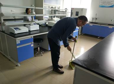 活动开始后,在资环学院党总支吴维义书记带领下全体教师党支部老师自带抹布等打扫卫生工具,来到采矿楼5楼环境工程教学实验中心,有序开展实验室清洁活动,经过大家辛勤劳动打扫后环境工程教学实验中心焕然一新。通过此次活动,引导广大党员教师牢记使命.不忘初心,热爱劳动,美化校园,积极投身学校各项建设中来,为学校发展做出更大贡献。