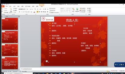 随后会议进入竞选演讲环节,竞选同学语言自然流畅的通过介绍自己特长和工作经历加深参会人员对其了解,并对竞选原因及工作设想进行了阐述。
