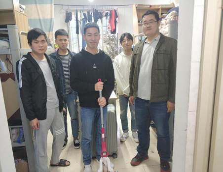 5月29日下午,我院党总支副书记梁珍、学生科科长张双菊及李永老师带领我院学生会生活部成员为获奖宿舍颁发了帮助同学们打造更好生活环境的奖品------清洁打扫工具。
