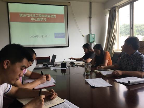 (本网讯图/文 向坤)7月21日下午14时30分,资源与环境工程学院党总支在603会议室召开2020年第三次中心组学习会议,会议由党总支书记吴维义同志主持,副院长李桂贤、副书记梁珍及学院科级干部和党支部书记等参加了此次会议。