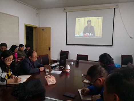 2018年3月17日上午9点,资源与环境工程学院组织全体党员在603会议室学习“贵州省新时代学习大讲堂”第一讲专题讲座。讲座由中共贵州省委常委、组织部长李邑飞主持,中共中央党史研究室原副主任、中央马克思主义研究和建设工程咨询委员会委员李忠杰教授为主讲嘉宾。