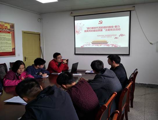 为深入学习贯彻7月3日、4日召开的“全国组织工作会议”精神;2018年10月25日中午12:30,我院学生党支部在行政楼603会议室举行了关于“践行新时代党的组织路线·着力提高党的建设质量”的主题党日活动,资环学院学生党支部全体党员参加了此次活动,活动由学生党支部书记李永老师主持。