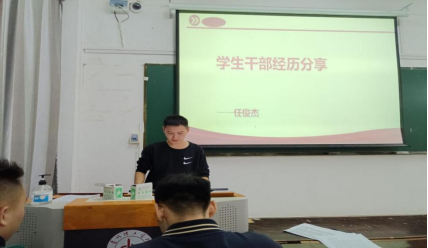 在热烈的掌声中,学生会主席任俊杰与同学们分享了他在学校“骨干培训”班的经历以及学生工作经验,他鼓励2022级的同学们要以认真的态度对待每份工作,努力做好老师的助手,在广大同学中起到先锋模范带头作用。