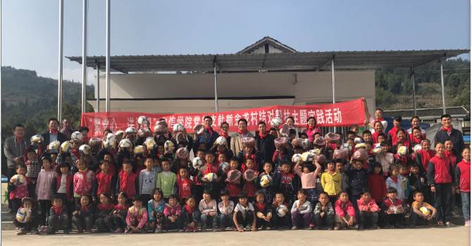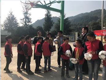 座谈会后,镇、村领导陪同学院一行来到金龙小学,王婷婷书记和张清江院长向同学们送去温馨有爱的关怀和问候,并现场向金龙小学116名同学捐赠篮球、排球、足球等运动物品,希望同学们在学好知识的同时,多锻炼身体,拥有健康的体魄。