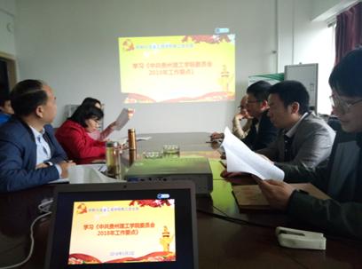 2018年是贯彻党的十九大精神的开局之年,也是我校全面从严治党的关键之年,合格评估的攻坚之年,新校区建设的收获之年,教育教学改革的提质之年。为了保质保量完成各项工作,中共贵州理工学院委员会下发了“2018年工作要点”。材料与冶金工程学院于2018年5月3日下午2点在主楼802会议室召开支部大会和全体党员大会,共同学习“中共贵州理工学院委员会2018年工作要点”,会议由教工党支部书记刘伟同志主持。