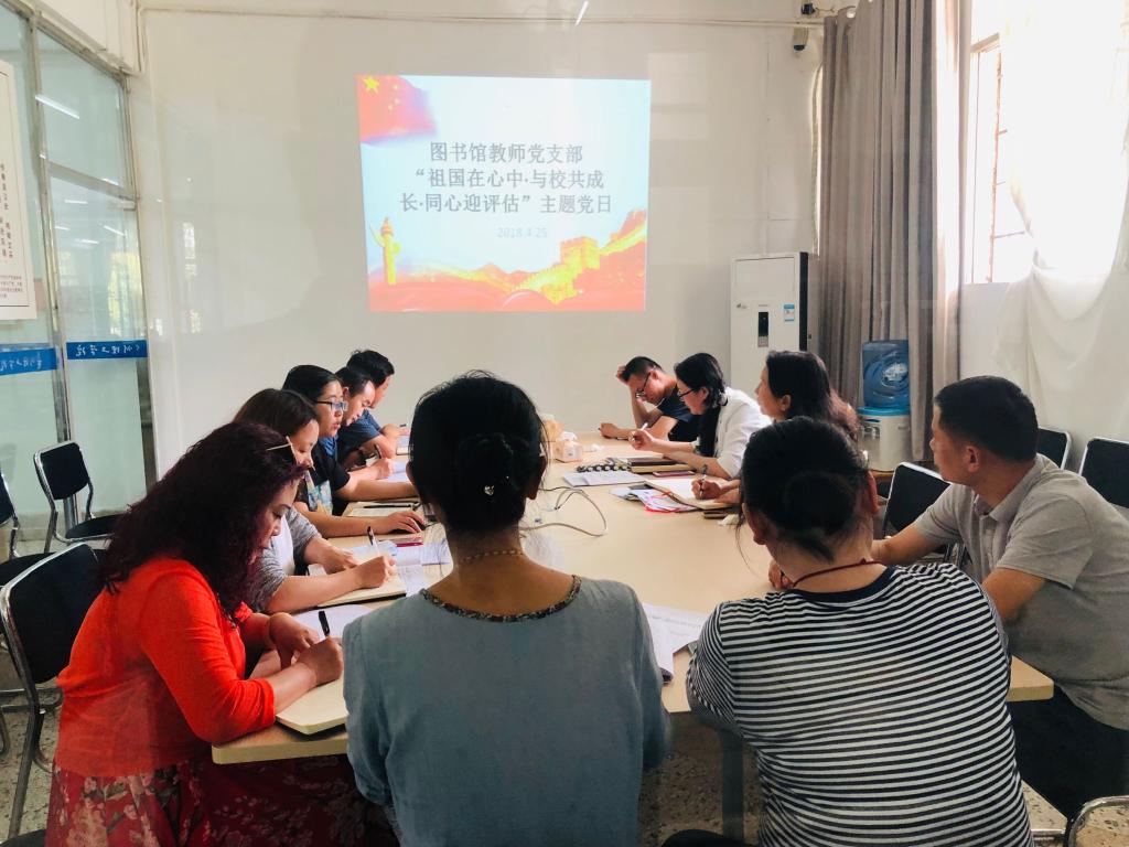 本网讯(图书馆朱丹/文 张廉/图)根据学校组织部《关于开展“祖国在心中·与校共成长·同心迎评估”主题党日活动的通知》(贵理工组通[2019]6号)要求,4月25日下午,图书馆教师党支部组织在图书馆研讨室开展了“祖国在心中·与校共成长·同心迎评估”主题党日活动。