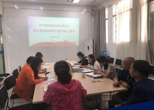 本网讯(图书馆 沈庭燕/文 朱丹/图)根据学校组织部《关于开展“庆祝建党98周年·践行初心使命”主题党日活动的通知》(贵理工组通[2019]22号)要求,7月1日下午,图书馆教师党支部组织全体党员在图书馆研讨室开展了“庆祝建党98周年·践行初心使命”主题党日活动。