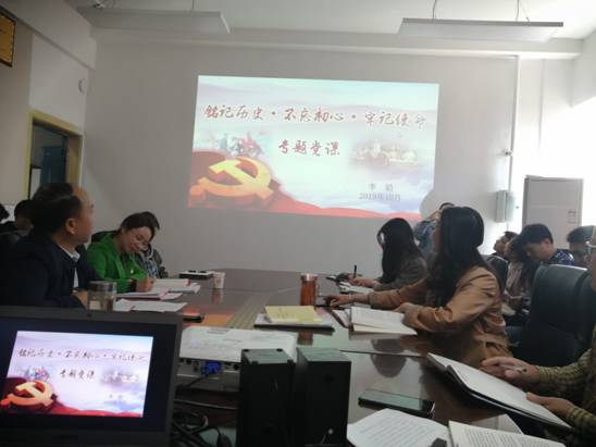 党支部书记李娟同志以“铭记历史、不忘初心、牢记使命”为题,按照中国共产党成立至今各个时间阶段的主要特征,分别按照新民主主义革命时期,社会主义革命和建设时期,改革开放和社会主义现代化建设新时期三个内容讲党课。李娟书记的党课使党员同志对党的历史有更深刻的理解,为党员继承和发扬革命传统、党的优良作风提供根本遵循。