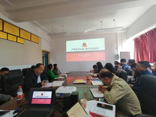 学院党总支委员李杨同志以“严明党的纪律,遵守党的规定”为题给全体师生党员上党课。李杨同志围绕党要管党、从严治党;严明纪律、依规治党;正风肃纪、执纪必严三个方面来展开党课。最后以王晓光、蒲波、袁仁国等案件为例讲述违纪违法所受到的惩罚。通过李杨同志讲授相关知识内容,使党员对党纪党规有更深的理解和认识,并从案件中汲取了深刻教训。