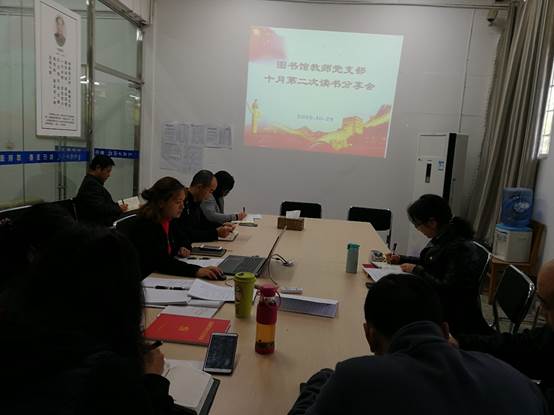 2019年10月29日上午,图书馆教师党支部在图书馆01研讨室召开第二次读书分享会,图书馆党总支郭红书记和全体在馆党员参加了会议。