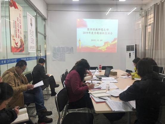 本网讯(图书馆 沈庭燕/文 朱丹/图)根据学校《关于召开2019年度专题组织生活会和开展民主评议党员的通知》(贵理工教组发〔2019〕40号)的相关要求, 12月9日下午,图书馆教师党支部组织在图书馆研讨室召开2019年度专题组织生活会,图书馆全体党员参加此次大会。