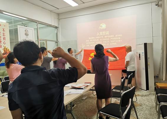 此次活动分为两个部分,一是政治理论学习,全体党员集中学习了《中国共产党章程》和《中共中央关于加强党的政治建设的意见》;二是现场活动,党总支书记郭红带领全体党员面对党旗宣誓,重温入党誓词,并为过政治生日的党员送上贺卡及党组织的祝福。三位过政治生日的同志重温《入党志愿书》,回顾入党历程和成长经历,讲述入党初心,交流心得体会。