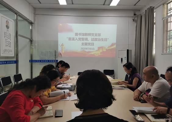 本网讯(图书馆 沈庭燕/文 范玉霞/图)根据学校《关于开展庆祝中国共产党建党99周年系列活动的通知》(贵理工党办发[2020]67号)文件要求,7月1日下午,图书馆教师党支部组织全体党员在图书馆研讨室开展了“重温入党誓词、过政治生日”主题党日活动。