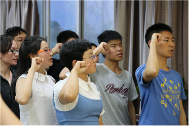 接下来,由学生科顾英老师带领全体党员,面向党旗,重温誓词。在鲜红的旗帜前,所有人同时举起右手,庄严宣誓,铿锵有力的宣誓让每一名党员同志更增荣誉感、责任感和使命感。